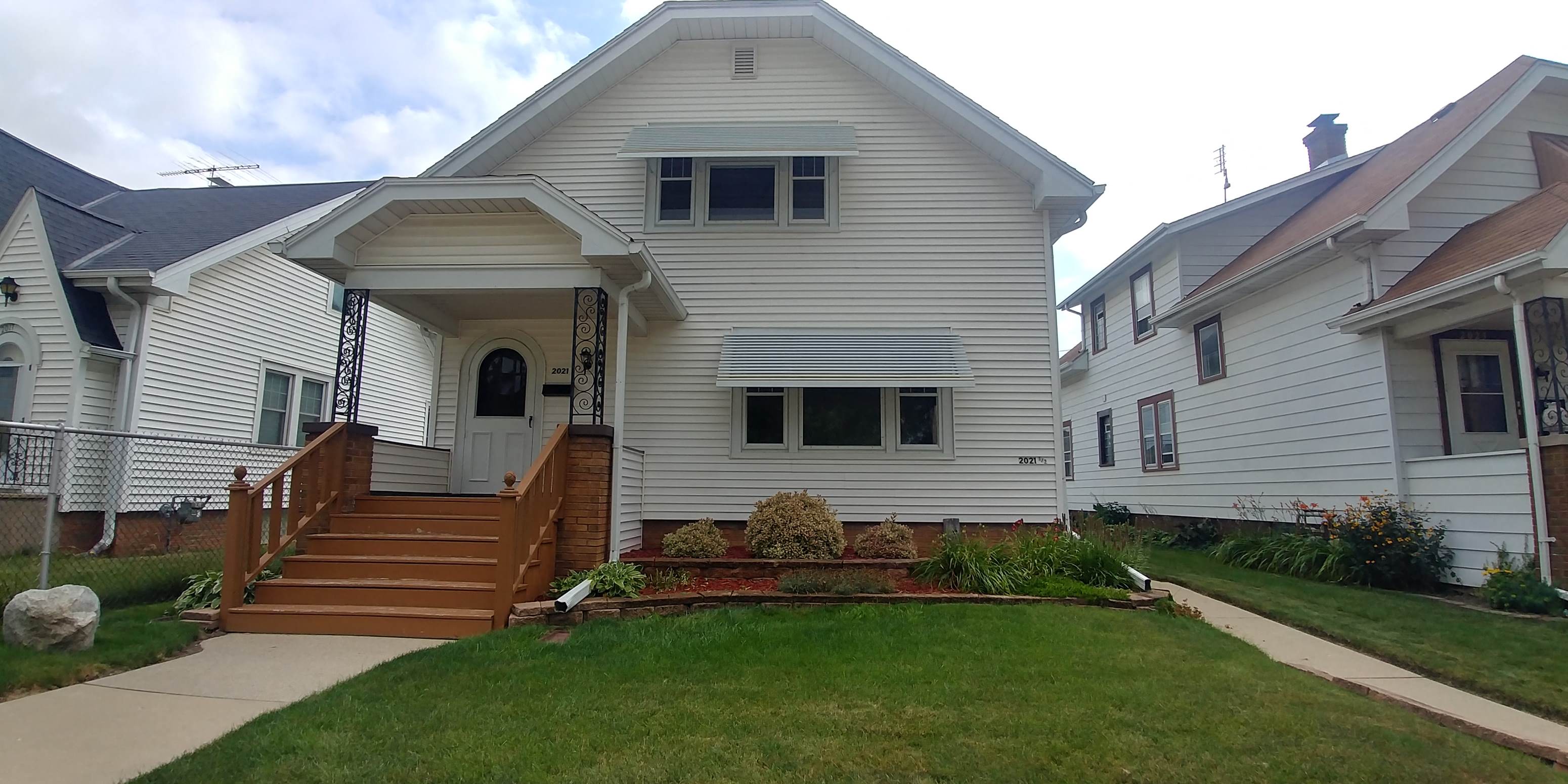 Upper unit for rent in racine has maintenance free vinyl siding 2 car detached garage one stall unit with new doors.